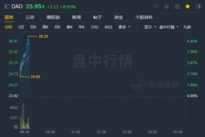 (April 1) DAO up nearly 9%. TAL rose more than7%. Edu advanced 6%. GSX Techedu rose about 3%.