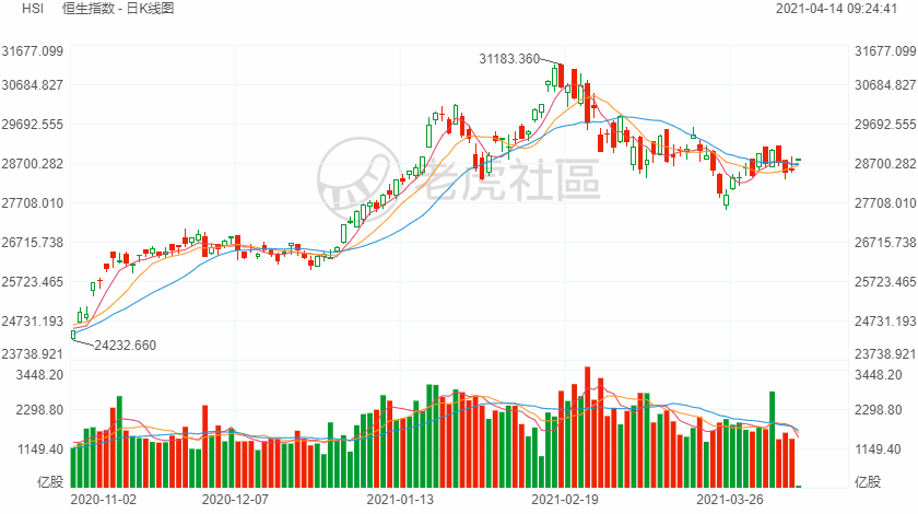 盘面上,比特币再创新高,区块链概念股全线高开,雄岸科技涨6.1%,火币科技涨5%,柏能集团、美图涨4.8%。光伏玻璃股走强,福莱特玻璃高开2%;有色金属、汽车、半导体、生物科技、物业股普遍上扬,体育用品股延续强势行情;昨日表现弱势的大型科技股集体上涨,网易高开5%,美团涨4%,昨日大跌7.44%,腾讯涨超2%;猪肉概念股、香港银行股走弱明显。