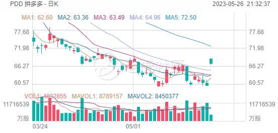 拼多多开盘大涨超13%,Q1营收同比增长58%至376.37亿元,净利润同比增长212%至81.01亿元,均超市场预期;在线营销服务及其他收入272.44亿元,同比增长50%。