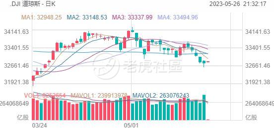 5月26日(周五),道琼斯指数开盘上涨42.65点,涨幅0.13%,报32807.30点;标普500指数开盘上涨6.35点,涨幅0.15%,报4157.63点;纳斯达克综合指数开盘上涨32.55点,涨幅0.26%,报12730.65点。