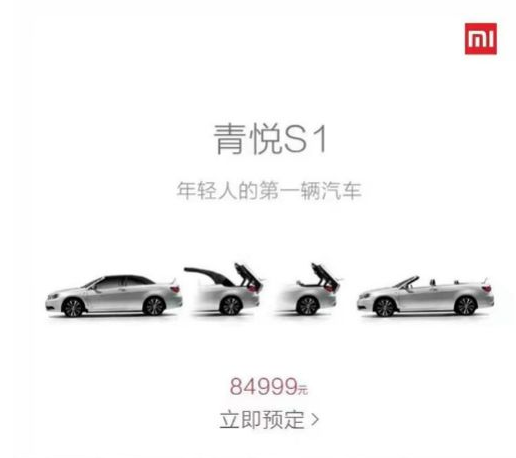 2020年12月11日,小米集团与比亚迪共同创立联合实验室,一同开始搭建技术开发平台,随后“小米蓝天计划”曝光,一款被称为“年轻人的第一台车”的青悦S1被放上网络,预售价仅为84999元,与现在市场在售新能源汽车相比,性价比简直不要太高,但小米官方始终没有对此传闻做出回应。