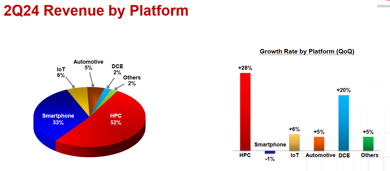 The company’s success punctuates the continuing demand for cutting-edge chips essential to powering AI applications, cloud computing and other high-performance technologies. In 2Q24, the company derives more than half of its revenue from the high-performance computing (HPC) segment.