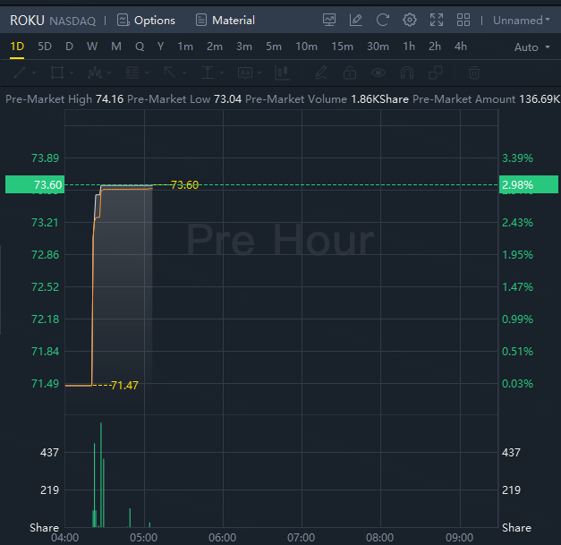 Roku Inc rose nearly 3% in premarket trading ahead of its financial results.