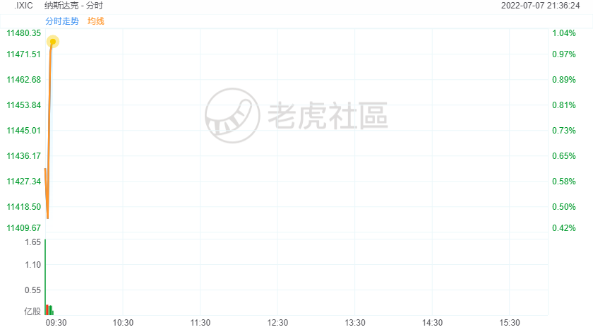 7月7日,美股盘初拉升,纳指涨1%,标普500指数涨约0.9%,道指涨0.7%。