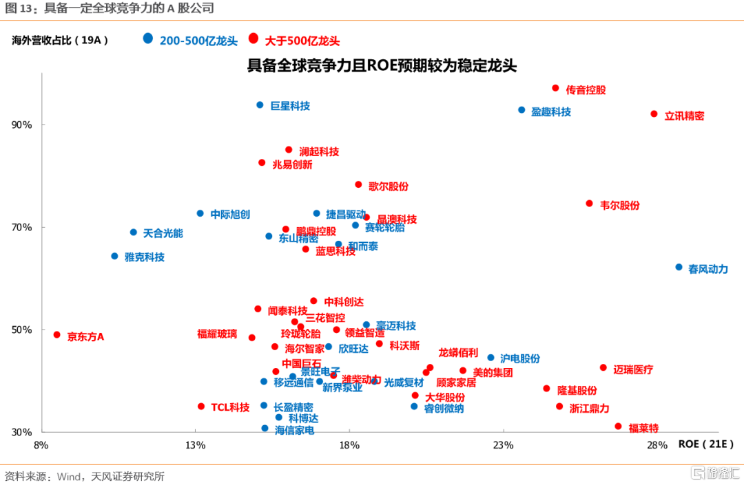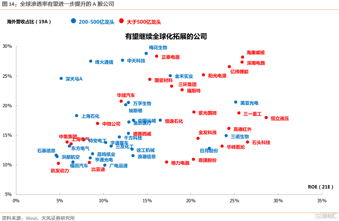 海外渗透率的提升,可以部分抵消国内需求的波动性,使得公司ROE具备更强的稳定性,最终对应更高的估值水平。