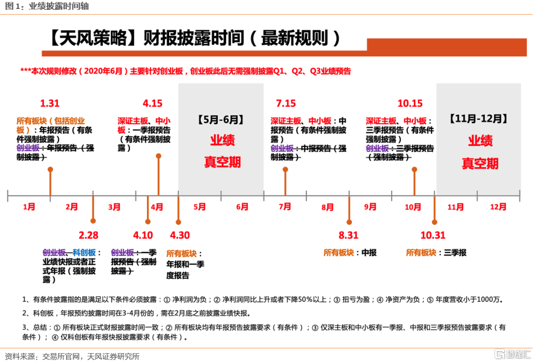 ① 首先,关于业绩披露规则,有一点需要补充说明,为贯彻落实新《证券法》信息披露相关要求,3月19日晚,证监会发布修订后的《上市公司信息披露管理办法》(以下简称《信披办法》),自2021年5月1日起施行。其中一个最大变化是:上市公司应当披露的定期报告包括年度报告、中期报告。相对前一个版本,去掉了季度报告。