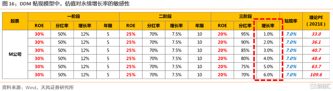 如上图模型所示,三阶段的永续增长率,对估值的影响非常大。
