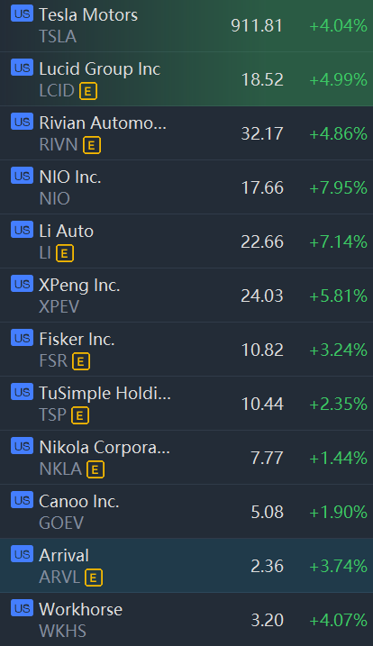EV stocks rebound in morning trading. Tesla, Lucid, Rivian, Nio, Xpeng Motors, Li Auto, Fisker, Nikola and Arrival climb between 1% and 8%.