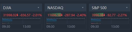 Dow Jones, Nasdaq and S&P 500 tumbled over 2% in morning trading. Apple, Amazon slipped over 4% and 3% separately.