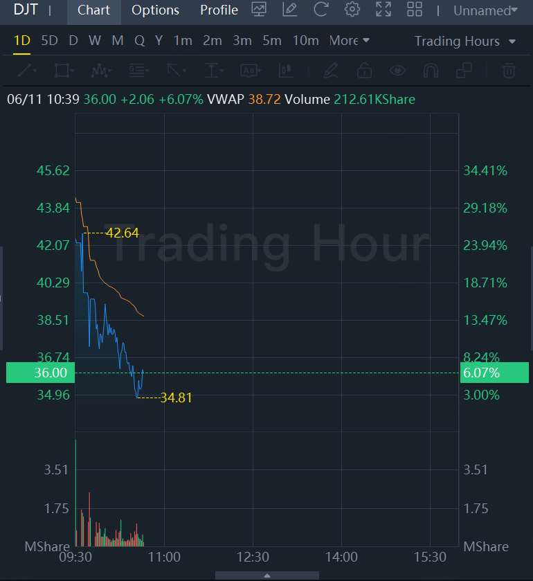 Trump Media & Technology Group Shares Pare Gains, Last up 6%.