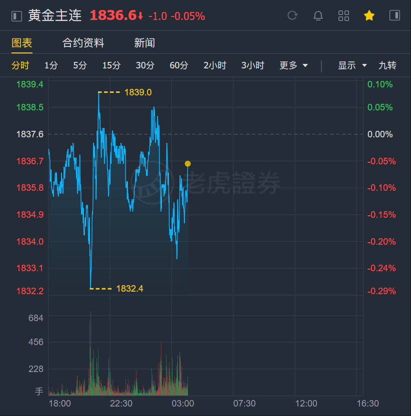 国际黄金微跌,日内跌0.05%,报1836.6美元/盎司。
