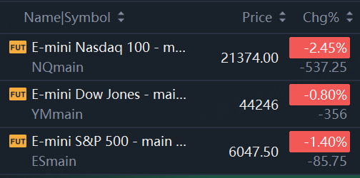 Nasdaq futures tumbled 537.25 points, or 2.45%; Dow futures sank 356 points, or 0.8%; S&P 500 futures slid 85.75 points, or 1.4%.