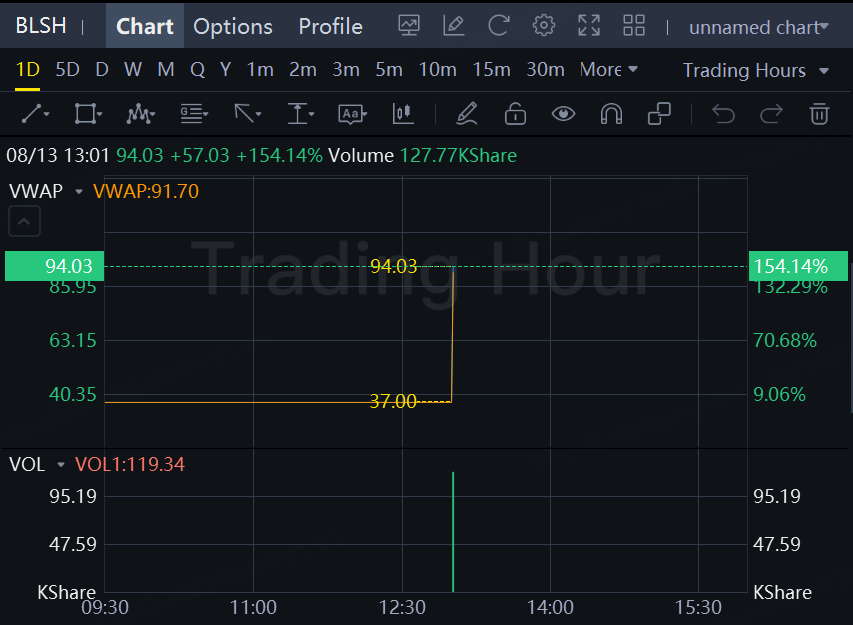 It is expected to start trading on NYSE under the ticker symbol "BLSH" on Wednesday.