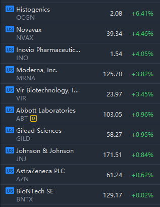 Vaccine stocks bounced back in morning trading, with Novavax and Moderna rising around 4%.
