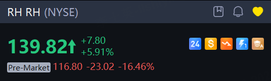 RH shares tumbled 16.5% in premarket trading after the company’s fourth-quarter results and expectations for the first quarter and full year disappointed investors despite indications that the company is navigating “a dire housing market.” This was evidenced by 3.7% revenue growth and more than doubling of unadjusted net income during the final quarter of the year.