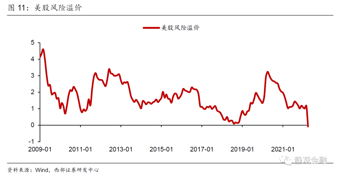 4)重申美联储加息周期大概率止步于年内。一旦经济转差并存在衰退风险或是美股大跌,通胀因素就不再是美联储货币政策的主要矛盾。往后看,一方面下半年美国经济放缓、明年经济衰退风险较高;另一方面目前美股风险溢价已经转负,调整压力不断加剧。进而,美联储于年内结束加息为大概率。
