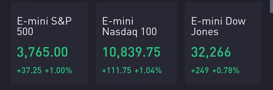 At 8:45 a.m. ET, Dow e-minis were up 0.78%, S&P 500 e-minis were up 1%, and Nasdaq 100 e-minis were up 1.04%.