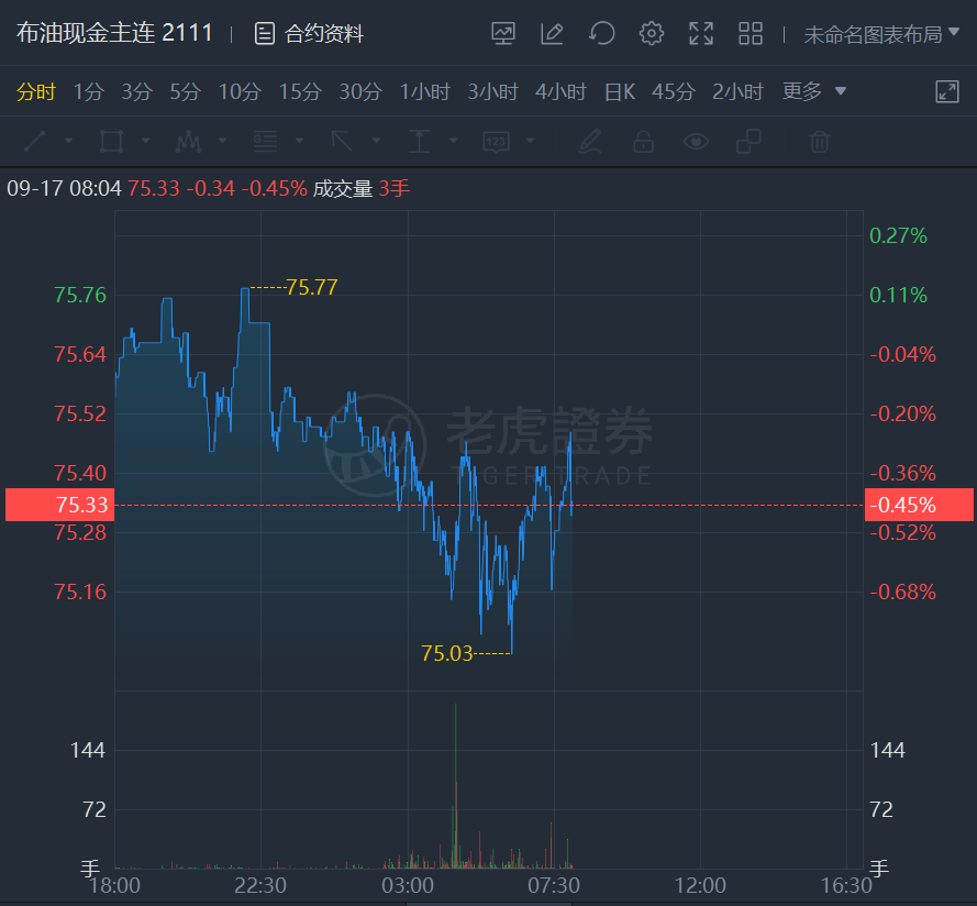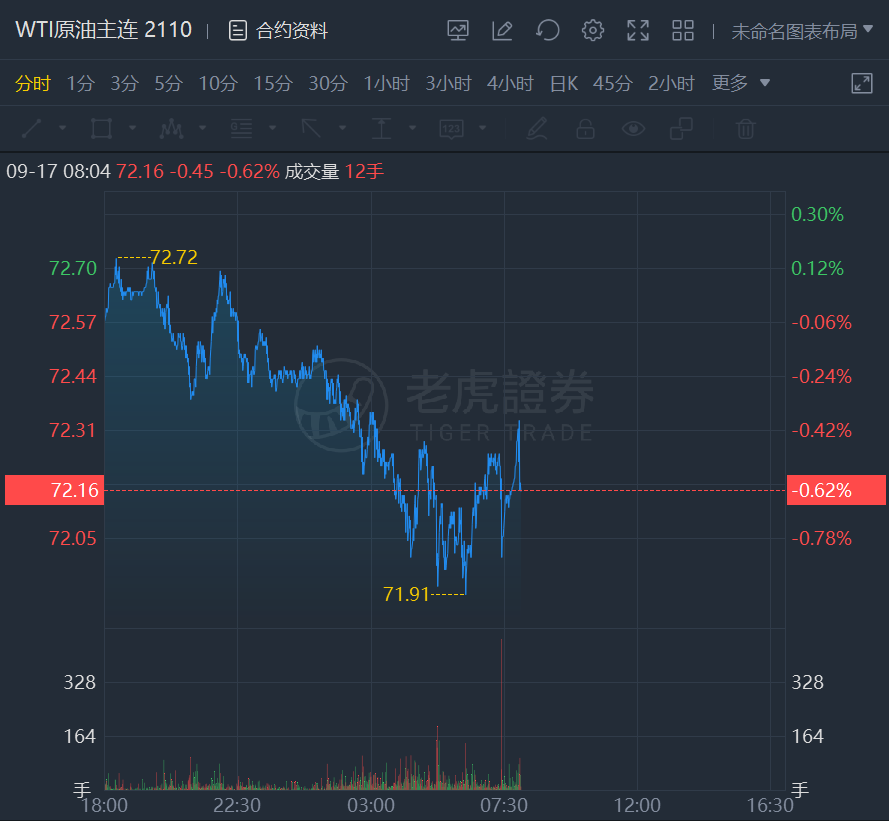 原油期货日内走低,截止发稿,WTI原油跌0.62%,报72.16美元/桶;布伦特原油跌0.45%,报75.33美元/桶。
