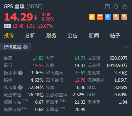 盖璞跌12.67%,此前宣布子品牌Old Navy的CEO南希·格林将于本周末离职,并预计第一季度销售下降幅度将超过最初的预期。