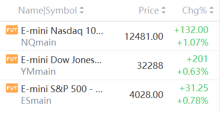 U.S. stock futures pointed higher Wednesday. At 4:30 a.m. ET, Dow e-minis were up 201 points, or 0.63%, S&P 500 e-minis were up 31.25 points, or 0.78%, and Nasdaq 100 e-minis were up 132 points, or 1.07%.