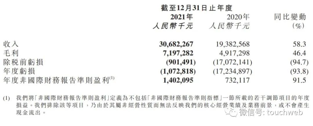 京东健康2021年毛利71.97亿元,较上年同期的49.17亿元增长46.4%;年度亏损为10.73亿元,上年同期的年度亏损为172.35亿元;扣非后净利为14亿元,较上年同期的7.32亿元增长91.5%。