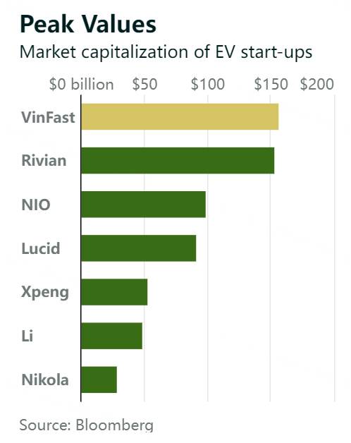 VinFast shares are also worth more than Porsche (P911. Germany), which is worth about $100 billion. It is comfortably ahead of the second-largest maker of battery-electric vehicles, or BEVs, on the planet, BYD (1211. Hong Kong), which is worth about $92 billion.