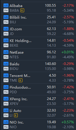 Hot Chinese ADRs slumped in premarket trading, with Alibaba and Bilibili sliding over 5%.