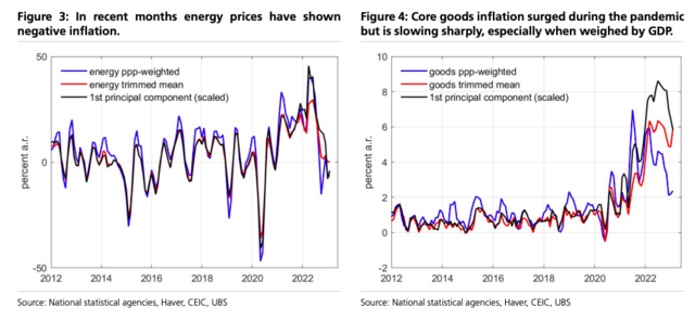 瑞银指出,能源和商品价格转向是最令人信服的,即使是服务业价格,尤其是如果不包括住房的话,转向也较明显。无论是修正平均值、GDP加权平均值还是主要成分,结论都成立。