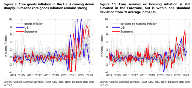 但自俄乌冲突以后,欧元区国家经历了比例大得多的通胀冲击,但最近的数据表明,这一冲击已经完全回落。