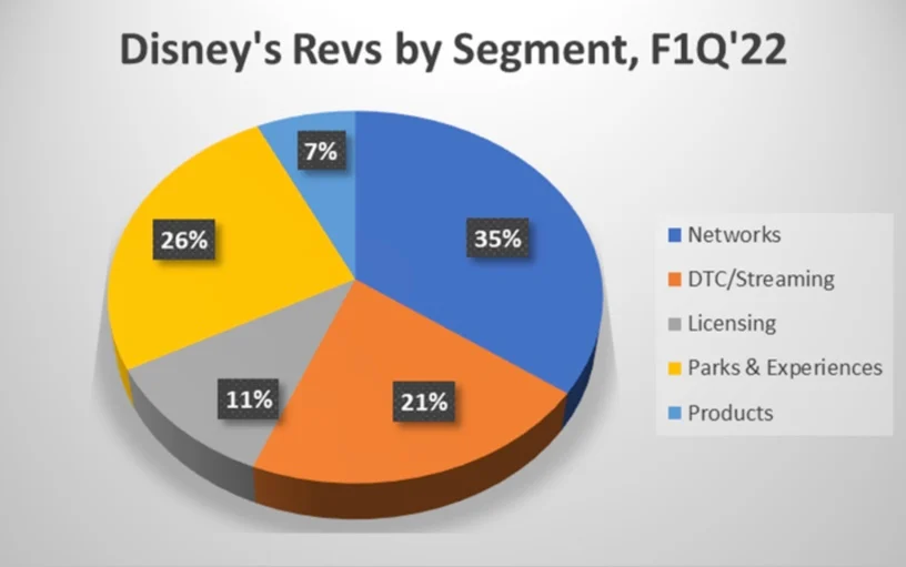 Figure 3: Disney's revenues by segment, F1Q'22.