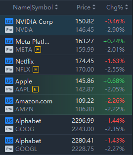 U.S. large-cap stocks slid in premarket trading; Nvidia, Meta, Netflix, Apple, Amazon and Google fell over 2%.