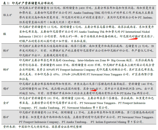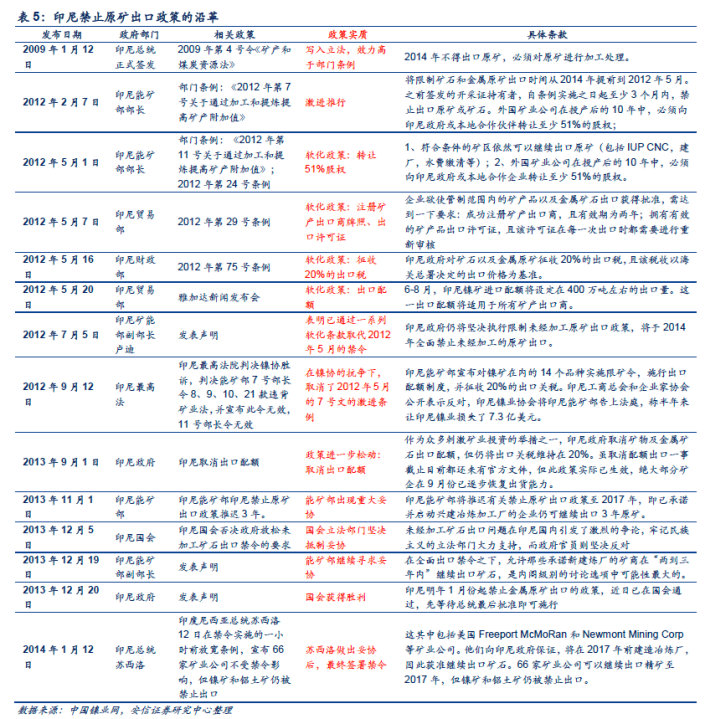 作为全球最上游原料供应基地,印尼的镍及铝金属90%以上以初级矿产品形式出口,极少做深加工,为了改变自己人口众多、经济落后的现状,从2002年开始,印尼限制金属出口的政策就时常被政府提出。