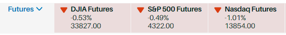 2月22日美股盘前,美股三大股指期货都处于下跌通道。