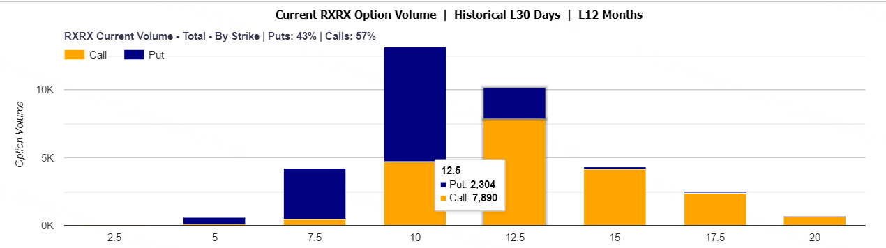 Trading volume related to Recursion was not quite active. A total number of 35,789 options related to Recursion was traded, of which call options accounted for 57%. A particularly high trading volume was seen for the $12.5 strike call options, with a total number of 7,890 option contracts traded as of Wednesday. $RXRX 20230721 12.5 CALL$