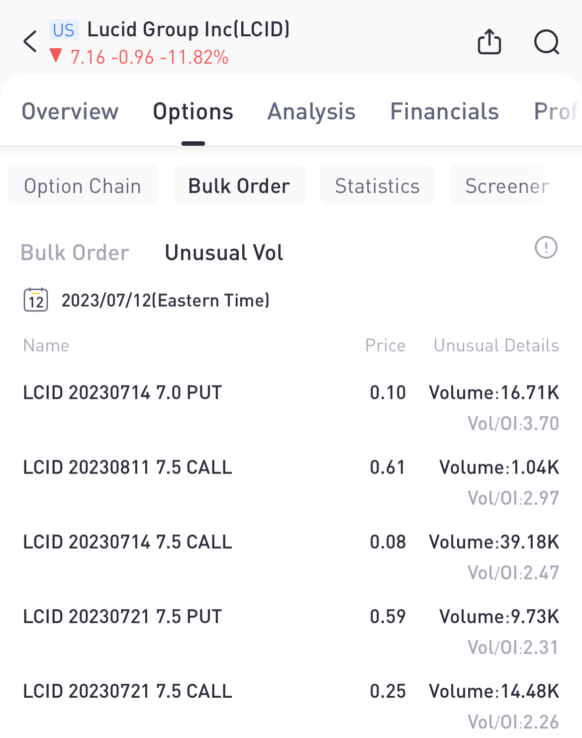 A total number of 87,249 options related to Lucid was traded, of which call options accounted for 74%. A particularly high trading volume was seen for the $7 strike put options expiring July 14, with a total number of 16.71K option contracts trading on Wednesday.