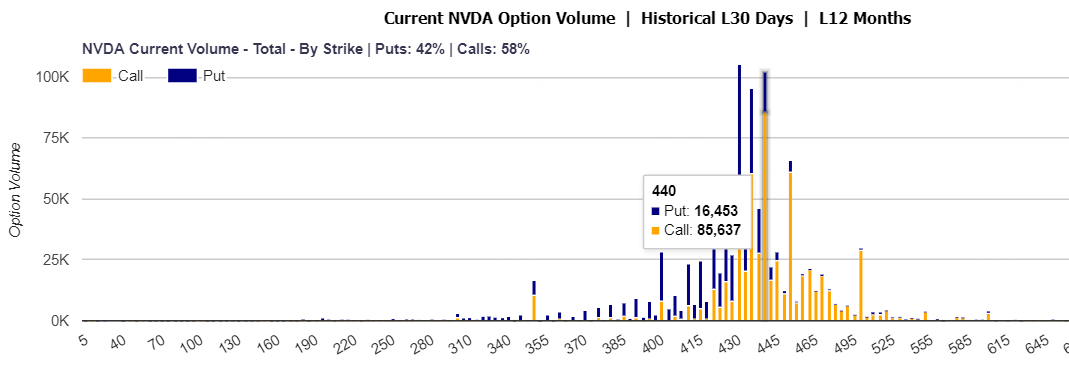 A total number of 1.07 million options related to Nvidia was traded, up 116.8% from the previous trading day. A particularly high trading volume was seen for the $440 strike call options, with a total number of 85,637 option contracts traded as of Wednesday. $NVDA 20230714 440.0 CALL$