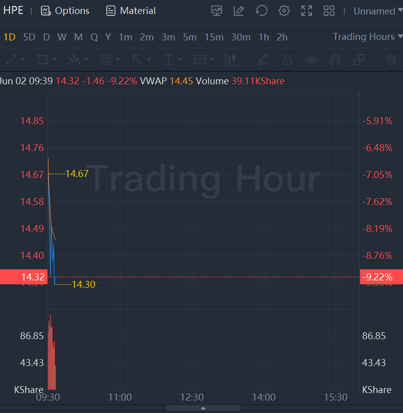Hewlett Packard Enterprise Co. declined over 9% in morning trading after lowering its full-year profit forecast, citing unfavorable currency movements, supply chain disruptions and the impact of exiting the Russian market.