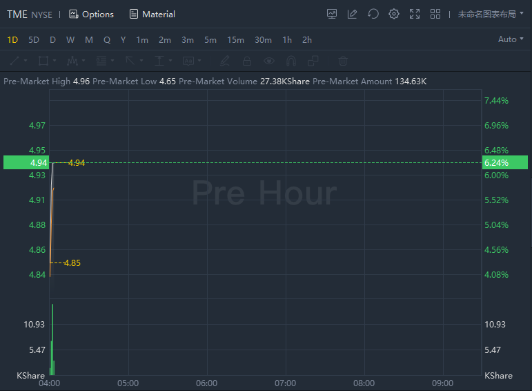 Tencent Music rose over 6% in premarket trading after announcing to pursue Hong Kong listing.