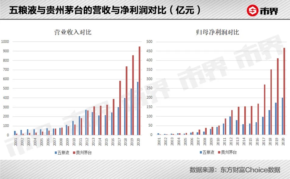 实际上,在中国白酒行业,若以上市公司的营收规模和利润论,贵州茅台不过才当了不到10年的“酒王”,而五粮液曾经当过近20年的“酒王”。