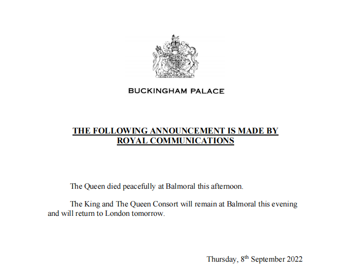 本文来源:央视新闻,原文标题《英国王室:女王伊丽莎白二世去世》