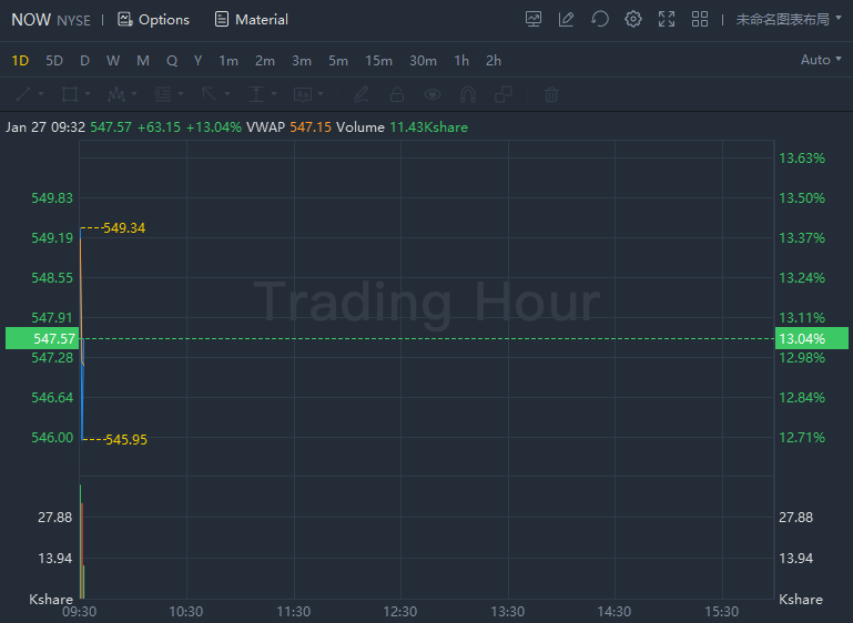 ServiceNow soared over 13% in morning trading after its Q4 results edged higher.
