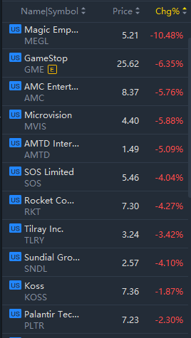 Meme stocks fell in morning trading, with GameStop crashing over 6% and AMC crashing over 5%.