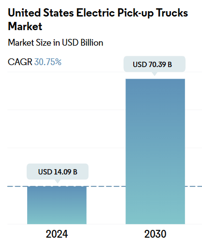 Apart from promising prospects of aggressive expansion into the segment of budget models, there are several other reasons to remain bullish. For example, Tesla's bold move into the pickup truck market where Ford has been dominating for decades, is also developing well. Despite being a very young model, the Cybertruck has already gained a third spot in the U.S. Q3 2024 EV sales. With around 17,000 deliveries during the quarter, Tesla's pickup has outsold all main competitors including Ford's F-150 Lightning, Rivian's R1T, and Chevrolet Silverado EV. This is an extremely bullish sign for Tesla's investors because cementing its place as the leader in EV pickup sales will certainly bring long-term benefits as the industry is expected to compound with a 30.75% CAGR by 2030.