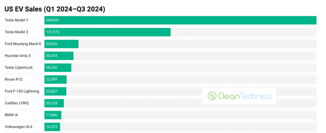 Despite Tesla's Models 3 and Y being quite young, they are already kind of legacy cash cows for the company. Positions of these two models remain stable as table. During the first nine months, these two models were by far the top-selling EVs in the U.S. and the gap between second and third spots is wide, softly speaking. These two models not only ensure Tesla's intact positioning in the domestic EV market but also help to maintain a leading 17.5% global market share among auto alliances that sell 100% battery-electric vehicles.