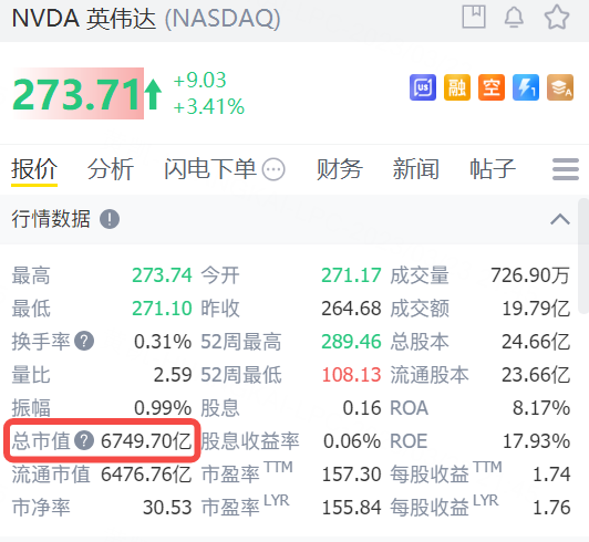 3月23日,英伟达盘初涨超3%,总市值逾6700亿美元,总市值超过伯克希尔哈撒韦。