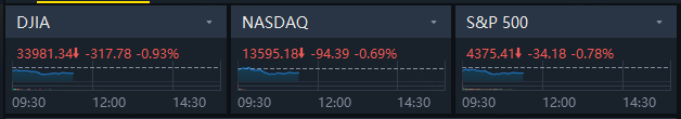 U.S. stocks extended their losses in morning trading; Dow Jones slipped 0.93%, S&P 500 fell 0.78% while Nasdaq slid 0.69%.