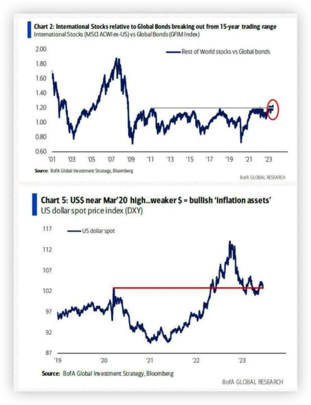 与此同时,美元的强势也有所减弱,美元指数目前在2022年4月的水平附近交易,较其历史高点下降了近10%。