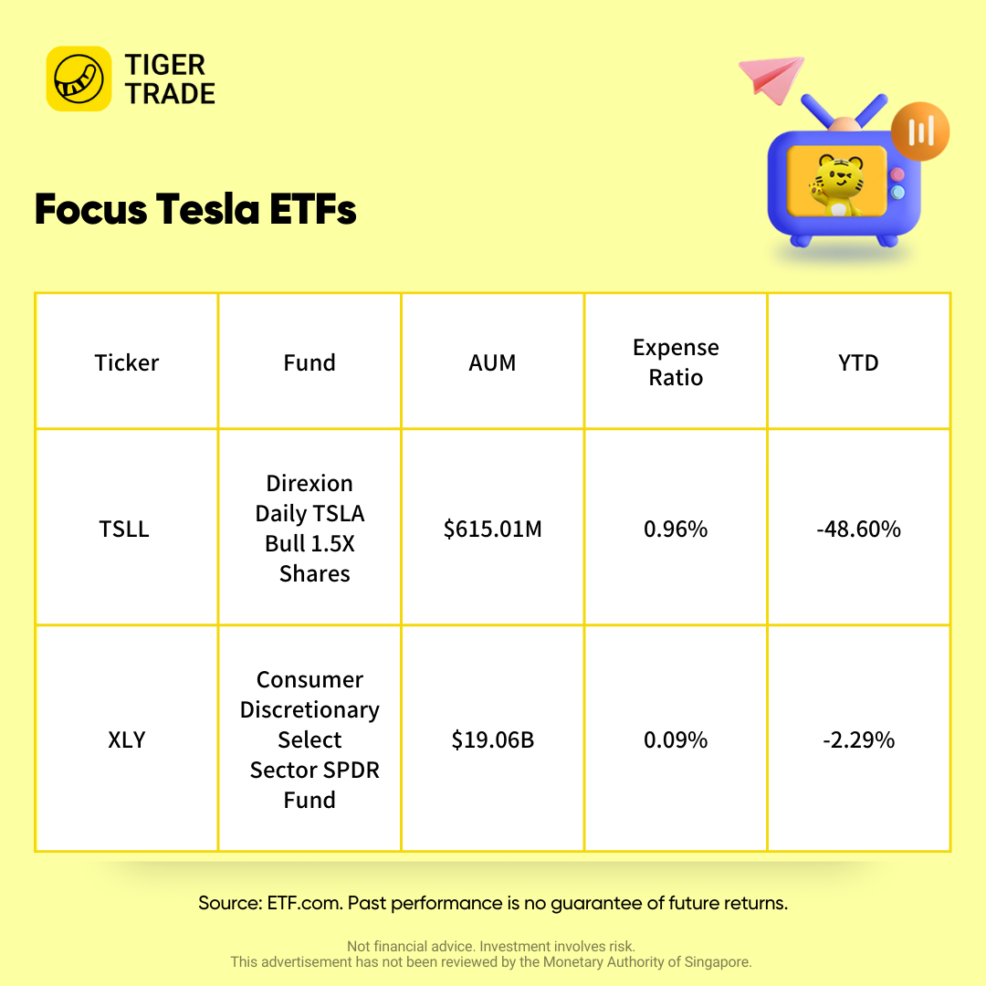 The assets under management of Direxion Daily TSLA Bull 2X Shares total $600 million. TSLL provides twice the leverage exposure to Tesla's stock price movements on a daily basis (net of fees and expenses). It charges an annual fee of 0.96%.