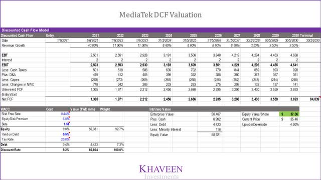 Based on MediaTek’s discount rate of 9.2% (company’s WACC), the upside is -4.74%.