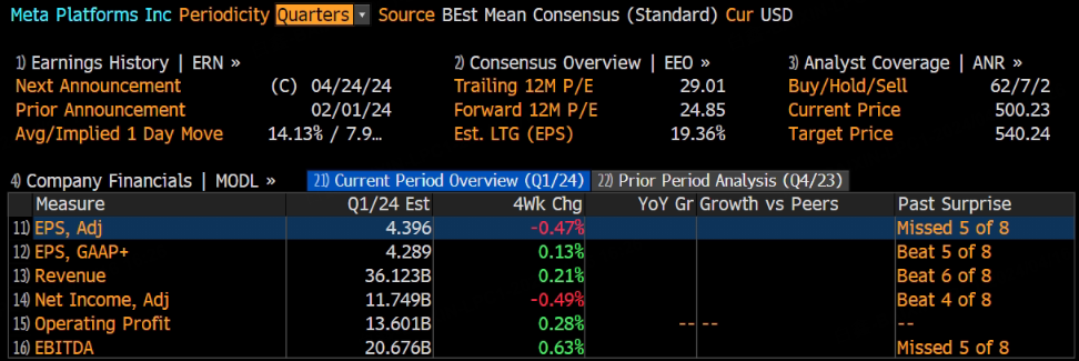 Meta Platforms is set to release its first quarter of 2024 financial results on 24 April 2024 after the US market closes.